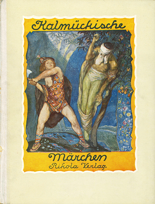 Mongolei – Kalmückische Märchen. Wie der Chansohn zwölfmal den Siddhi-Kür holte. Erzählt von Adolf Gelber. Wien u.a., Rikola 1921. 4°. 86, (10) S. mit einigen Zeichnungen im Text + 6 Farbtafeln, ornamental illustr. Vorsätze, farb. illustr. OPappbd. (nur der Rücken mit 3 kleinen Läsuren). Insges. sehr gutes Exemplar. 1. Auflage.