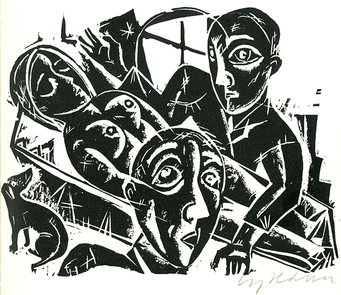 Fitzbauer, Erich, Die reißende Zeit. Gedichte. Vorangestellt Briefauszüge von Thomas Mann. Mit Illustrationen von Gunter Böhmer, Carry Hauser, Axl Leskoschek, Frans Masereel, Ludwig Meidner u.a. Perchtoldsdorf 1978. 22,5 x 31,5 cm. 107, (5) S., OLwd. mit illustr. OUmschl. (nur eine kl. Randläsur). Sehr gutes, unbeschnittenes Exemplar. EA. * 6. Publikation der Edition Graphischer Zirkel. Eins von 250 (ges. 400) handschr. nummer. Exemplaren, welche auf Zerkall Bütten Werkdruck-Papier (statt auf Offsetpapier) gedruckt wurden. Im Druckvermerk von Fitzbauer signiert. Unser Exemplar ist eines der bevorzugten Exemplare mit einem von Fitzbauer von Hand geschriebenen u. signierten Gedicht auf dem ersten Leerblatt. – Der Orig.-Linolschnitt „An des Mädchens Leiche“ wurde von Carry Hauser signiert. – Satz der Texte aus der Schwabacher Fraktur, auf geripptem, unbeschnittenen Bütten. Während die Zeichnungen (u.a. von Böhmer u. Meidner) Wiedergaben sind, wurden sämtliche Holzschnitte, Holzstiche u. Linolschnitte (von Hauser, Leskoschek, Masereel) von den erhaltenen Originalstöcken gedruckt.