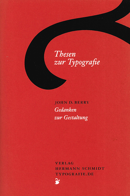 Typographie – Berry, John D., Thesen zur Typografie. Gedanken zur Gestaltung. Mainz, Hermann Schmidt 2014. Kl.-8°. 40 S., OBüttenkart. Tadellos. DEA. * Hübscher Druck, aus der Janson-Text gesetzt u. in kleiner Auflage in Rot u. Schwarz gedruckt.
