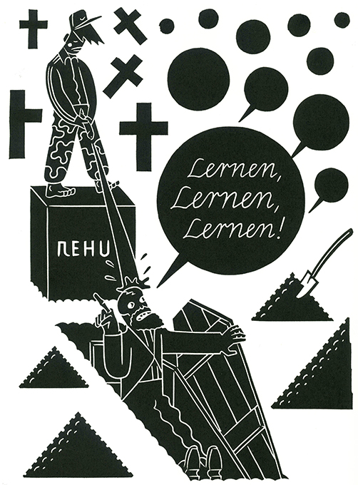 Junge Künstler – Feist, Christoph, Langeweile war mein Motor. Hrsg. von Christoph Ruckhaeberle u. Thomas Siemon. (= Lubok Spezial). (Leipzig), Lubok 2009. 24 x 32 cm. (64 S.), farb. illustr. OKlappenkart. (Blochbuchbindung). Sehr gutes Exemplar. EA. * Eins von 500 nummer. Exemplaren. Enthält 48 schwarz-weiße u. 16 farbige Linolschnitte, welche auf dem „Praesident-Zylinder“ von den Stöcken gedruckt wurden. Die meisten Linolschnitte ergänzen sich zu doppelseitigen Bildern.