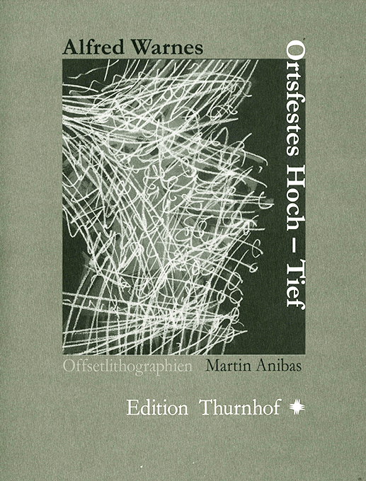 Thurnhof, Edition – Warnes, Alfred, Ortsfestes Hoch-Tief. Gedichte. Offsetfarblithographien von Martin Anibas. Horn, Edition Thurnhof 2007. 17 x 22 cm. 36, (4) S. mit 7 (6 ganzseit., 1 doppelblattgr.) zweifarb. Orig.-Offsetlithographien, OKt. mit OUmschlag. Tadelloses Exemplar mit beilieg. illustr. Lesezeichen zu diesem Buch. EA. * Eins von 400 (ges. 420) handschriftl. nummer. Exemplaren, von Autorin u. Künstler signiert. Satz des Textes aus der Garamond, gedruckt auf kräftiges Munken pure-Papier.