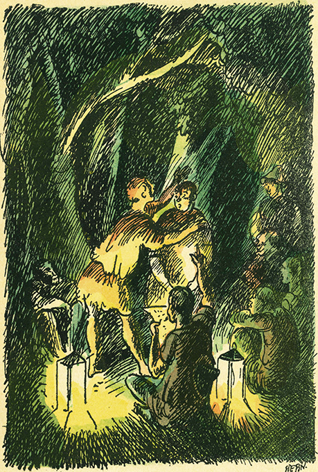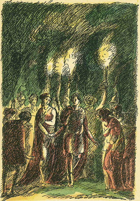 Stern, E. – Shakespeare, William, Ein Sommernachtstraum. Mit handkolorierten Federzeichnungen, nach der Aufführung des Deutschen Theaters zu Berlin von Ernst Stern. Berlin, Reiss 1918. 18,5 x 25,5 cm. 117, (3) S. mit 5 kleineren schwarzweißen u. 12 ganzseit. handkolorierten Zeichnungen, OHlwd. mit goldgepr. Deckel- u. Rückentitel, Kopfgoldschnitt (stellenw. etw. nachgedunkelt, Leinen mit sehr winzigen Stockfleckchen, Rückdeckel mit mit starken Beschabungen). Innen von tadelloser Erhaltung, einige Seiten noch unaufgeschnitten. 1. Auflage. * Eins von 550 (ges. 620) nummer Exemplaren der Normalausgabe.