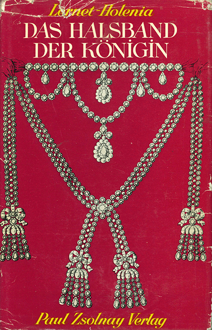 Lernet-Holenia, Alexander, Das Halsband der Königin. Hamburg u. Wien, Zsolnay 1962. 330, (2) S. + 8 Tafeln mit zeitgenöss. Darstellungen, 1 gefalt. Bogen mit dem Halsband in Originalgröße (39,5 x 47,5 cm), OLwd. mit farb. illustr. OUmschl. (dieser mit stärkeren Randläsuren). Sonst gutes Exemplar. EA WG² 67. * Vorsatz mit vierzeil. eigenhänd. Widmung: „Looking forward very anxionaly / to you 30th birthday / Alexander / Vienna, oct 5th, 1962“.