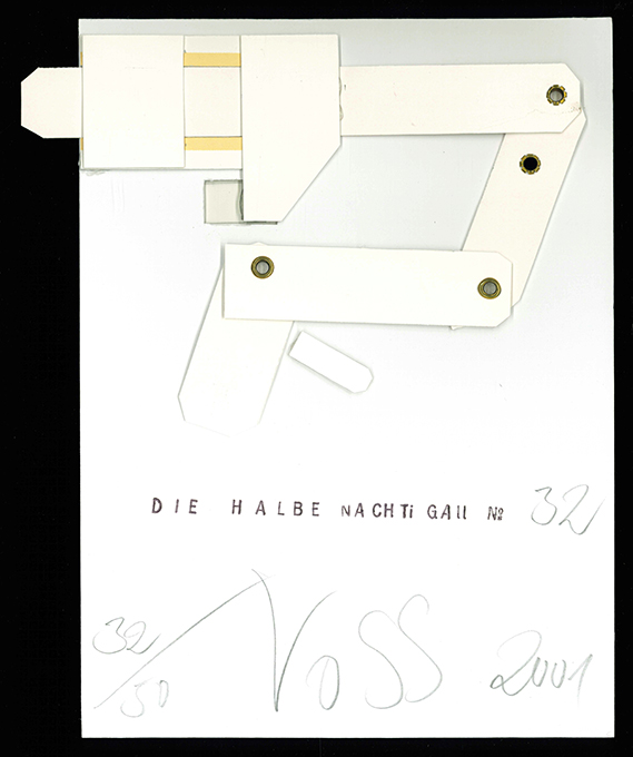 Trieder, Simone, Die halbe Nachtigall. [Vorzugsausgabe]. Bebildert von Beck, Rüdiger Giebler, Grita Götze, Moritz Götze, Karin Jarausch, Steffi Kaiser, Yvonne Kuschel, Susann Meyerhuber, Jan Trieder, Robert Voss, Christian Weihrauch, Gerd Westermann, Johannes Westermann. Leipzig, Thomas (2003). 4°. 47 S., blau u. schwarz gedruckt, mit 15 ganzseit. farb. Graphiken, illustr. Vorsätze, ill. OPp. mit illustr. OUmschl. Tadelloses Exemplar im Schuber. EA. * Eins von 50 (ges. 750) Exemplaren der Vorzugsausgabe mit einer Popup-Beilage von Robert Voss, rückseitig nummeriert, datiert u. signiert. Diese in einer nummerierten Papierhüllle und im – nur den Vorzusexemplaren vorbehaltenen – Schuber. – Dieses Exemplar von Simone Trieder auf dem Titelblatt signiert, außerdem die Graphik von Voss. – Das Buch wurde von der Stiftung Buchkunst als „eines der schönsten Bücher“ des Jahres ausgezeichnet. – „Dieses Buch ist ein Lese- und Bilderbuch für Erwachsene, ein besonderes Buch, abseits des Stroms mit ungwöhnlichen Erzählungen und anregenden Bildern Die Skurilität und Bösartigkeit dieser Geschichten findet mehr und mehr Anhänger auch außerhalb von Literatenkreisen, es beschenkt uns mit dem alltäglichen kleinen Wahnsinn, der hinter den Stirnen wohnt.“