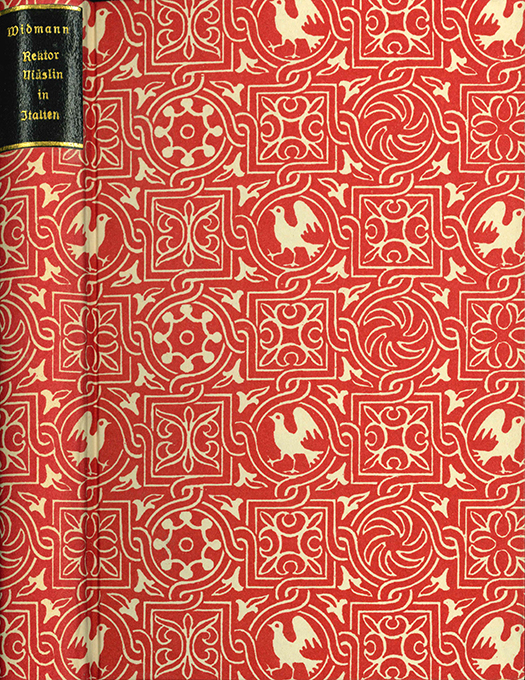 Widmann, Joseph Viktor, Rektor Müslin in Italien. Erzählung. Basel u. Leipzig, Rhein-Verlag 1924. Kl.-8°. 259, (5) S., späterer Pappbd. mit gemustertem Überzugspapier u. goldgepr. Lederrsch. Beiliegt der fragmentar. OUmschlag. Tadelloses Exemplar im individuellen Handeinband. EA.