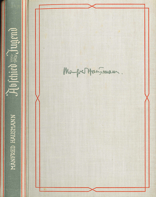 Hausmann, Manfred, Abschied von der Jugend. Roman. Mit Zeichnungen von Walter Müller. Bremen, Schünemann 1937. 295 S., 2 verschiedene farb. illustr. Vorsätze, OLwd. mit Kopffarbschnitt (Schnitt kaum sichtbar stockfl.) Schönes Exemplar. EA WG² 22.