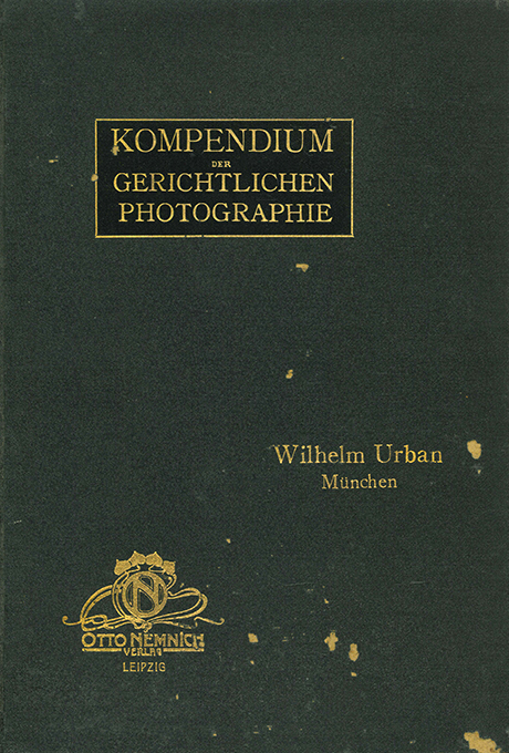 Urban, Wilh., Kompendium der gerichtlichen Photographie. Ein Handbuch für Beamte der Gerichts- und Sicherheitsbehörden, sowie den Unterricht an kriminalistischen Instituten und Gendarmerieschulen. Leipzig, Nemnich 1910. Gr.-8°. (8), VI, (2), 202, (12) S. mit 103 Abbildungen und Skizzen im Text u. auf Tafeln, OLwd. mit Goldpr. u. Ganzfarbschnitt (Überzugsleinen mit kleinen Fehlstellen). Sonst gut erhalten. Äußerst selten. EA. Heidtmann 7147.