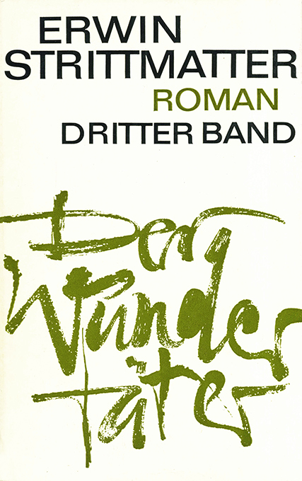 Strittmatter, Erwin, Der Wundertäter. Roman. Dritter Band. Berlin u. Weimar, Aufbau-Verlag 1980. 654, (2) S., OLwd. mit OUmschl. (dieser nur minim. unfrisch, Einband um Fußkapital mit Feuchtigkeitsfleck). Insgesamt gutes Exemplar. EA. * Vorsatz von Strittmatter signiert.