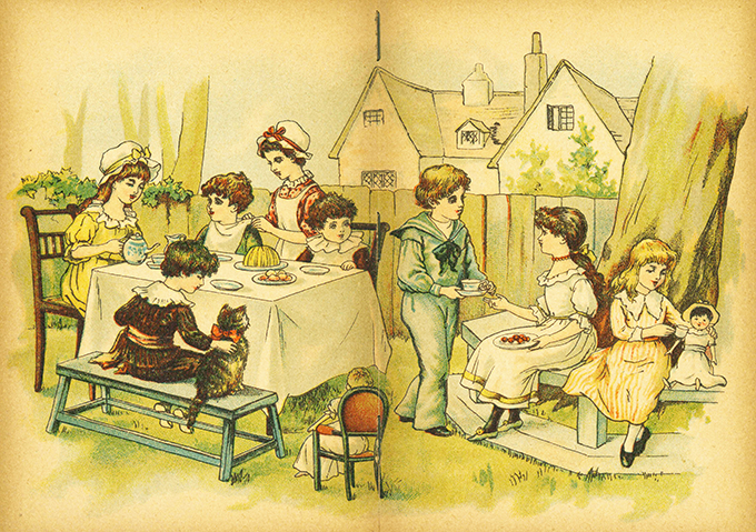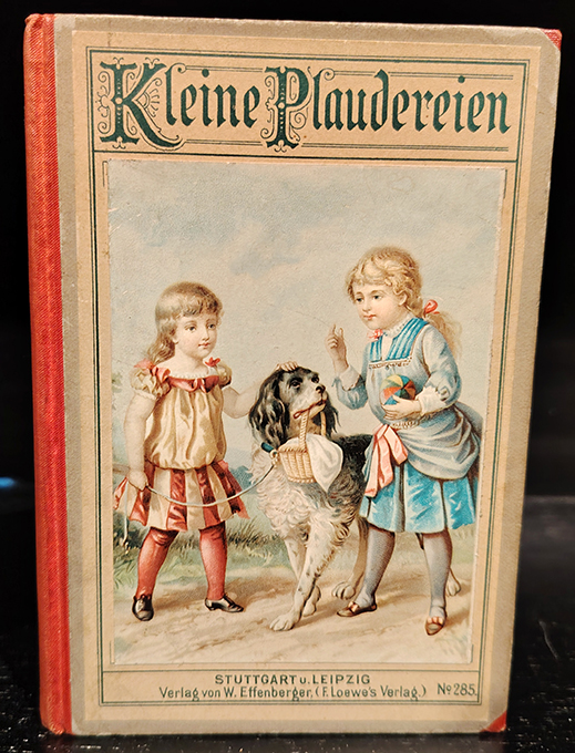 Lechler, Cornelie, Kleine Plaudereien. Erzählungen, Fabeln, Rätsel und Gedichte. Als Festgabe für unsere Kleinen gesammelt. Stuttgart u. Leipzig, Effenberger (1894). 10,5 x 15 cm. 96 S. mit 16 (teils doppelseit.) farbigen Chromolithographien u. 16 Textbildern, OHlwd. mit farb. Deckelbild (Heftklammern teils oxidiert, dadurch Innenfalz eingerissen u. eine Lage lose). Papier materialbed. gebräunt, Vorsatz mit Besitzvermerk aus dem Jahr 1896. Insges. noch wohlerhalten. Selten. EA.
