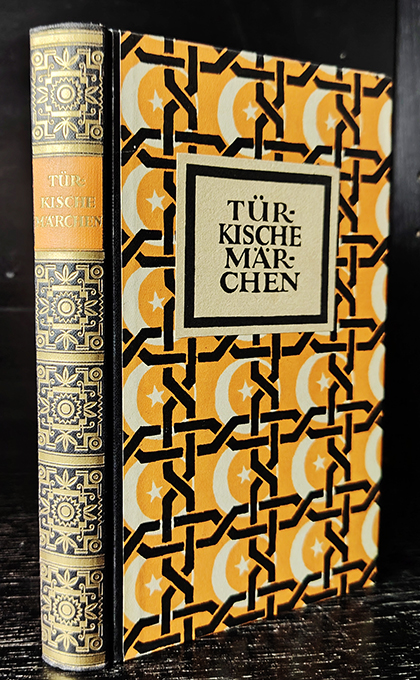 Türkische Märchen. Hrsg. von Fr. Giese. (= Die Märchen der Weltliteratur, hrsg. von Friedrich v.d. Leyen u. Paul Zaunert). Jena, Diederichs 1925. 304, (4) S. mit Titelillustration, OHlwd. mit goldgepr. Rücken, farb. gemustertem Überzugspapier u. Kopffarbschnitt. Gutes Exemplar in der besseren Einbandvariante (sonst: Pappe). Buchausstattung von F.H. Ehmcke. DEA.