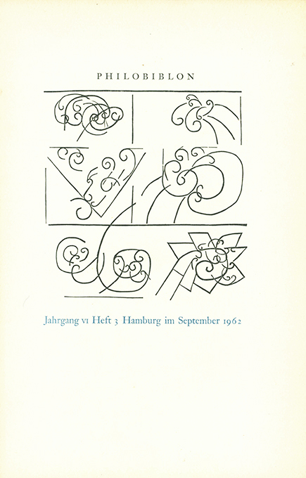 Insel-Bücherei – Schauer, Georg Kurt, Die Insel-Bücherei, eine Vorschule der Bibliophilie. S. 201 – 226 (!) mit 37 Abbildungen im Text u. auf 8 Tafeln in: Philobiblon. Eine Vierteljahresschrift für Buch- u. Graphiksammler. Heft 3/1962. Gr.-8°. (86) S. mit Abbildungen, teils auf Tafeln, illustr. OKt. (Otto Rohse; geringfügig nachgedunkelt, Kopfschnitt etw. angestaubt). Gutes Exemplar. * Weit. Beitr. von Carl J. Burckhardt (Totenrede für R. A. Schröder), über Italien und die ANfänge von Groliers Bibliophilie u.a.