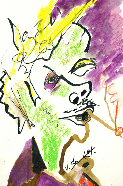 Sammet – Radiguet, Raymond, Den Teufel im Leib und Der Ball des Comte d’Orgel. Zwei Romane. Mit 28 (überwieg. ganzseit.) farbigen Illustrationen von Volker Sammet. Frankfurt, Büchergilde Gutenberg 1981. Gr.-8°. 315 S., OLwd. mit farb. illustr. OUmschl. im Schuber. Tadelloses Exemplar. 1. Auflage. * Eins von sehr wenigen (oder sogar das einzige?) Exemplaren einer nicht bezeichneten Luxusausgabe mit einem in einer Suitenmappe verwahrten, farbigen Original des Künstlers (15 x 22,5 cm; Tusche, Aquarell, Pastell), auf dem er das Sujet der Umschlagillustraton bzw. der Illustration auf Seite 12 aufgreift. Auf dünnem Karton u. mit Tusche signiert. – Exemplare mit einem Original waren mir bislang unbekannt, allerdings eine auf 180 Exemplare limitierte Vorzugsausgabe mit einer beiliegenden Radierung. Ein schönes, unikales Objekt.