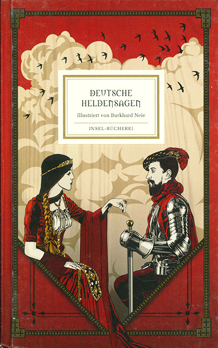 Insel-Bücherei 2030 – Deutsche Heldensagen. Nacherzählt von Gretel u. Wolfgang Hecht. Illustriert von Burkhard Neie. (= Insel-Bücherei 2030). Berlin, Insel 2018. 13,5 x 22 cm (IB-Großformat). 195, (5) S. mit zahlr. Illustrationen u. Buchschmuck in Rot u. Goldbronze, außerdem mit 21 ganzseit. Farbbildern, illustr. Vorsätze, farb. illustr. OPp. Sehr gutes Exemplar. Beiliegt das Verlagszettelchen zu diesem Band. EA.