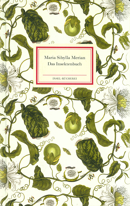 Insel-Bücherei 2012 – Merian, Maria Sibylla, Das Insektenbuch. Metamorphosis Insectorum Surinamensium. Mit einem (sehr umfangr.) Nachwort von Helmut Deckert. (= Insel-Bücherei 2012). Frankfurt u. Leipzig, Insel 2015. 13,5 x 22 cm (IB-Großformat). 164, (4) S. mit zahlr. Farbtafeln, farb. illustr. OPp. (Pflanzenmotive Merians). Eine Ecke kaum sichtbar angestoßen, sonst sehr gutes Exemplar. Beiliegt das Verlagszettelchen zu diesem Buch. 1. Auflage dieser Ausgabe.