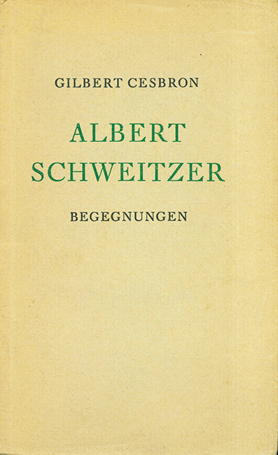 Schweitzer, Cesbron, Gilbert, Albert Schweitzer. Begegnungen. Übertr. von Karl Rauch. Berlin, Union Verlag 1957 (Lizenz von Kerle). 60, (4) S., OKlappenbrosch. (etw. verblasst). Sonst gut erhalten. Typographie u. Einband von Horst Erich Wolter. Erste Einzelausgabe.