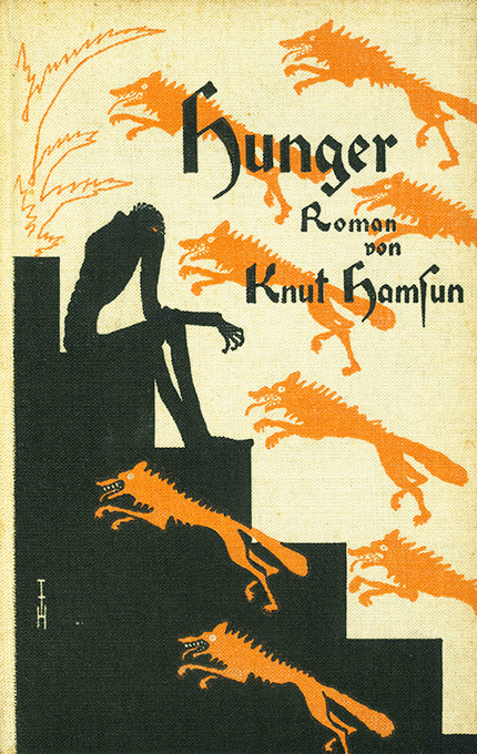 Hamsun, Knut, Hunger. Roman. Neue berechtige Übersetzung von J. Sandmeier. München, Langen/Müller (ca. 1942). 54.-58. Tsd. 186, (6) S., OLwd. mit der beeindruckenden zweifarb. Deckelzeichnung von Thomas Theodor Heine. Einband stellenw. nachgedunkelt). Vorsatz mit Widmung. Insges. recht gutes Exemplar.