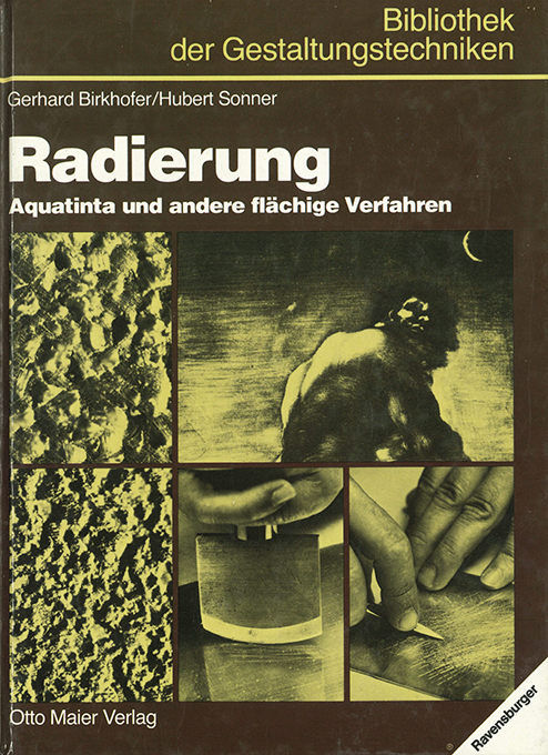 Radierung – Birkhofer, Gerhard u. Hubert Sonner, Radierung. Aquatinta und andere flächige Verfahren. (= Bibliothek der Gestaltungstechniken). Ravensburg, Otto Maier 1982. Gr.-8°. 80 S. mit 54 Abbildungen, illustr. OPp. Gutes Exemplar. EA.