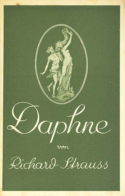 Strauss, Richard, Daphne. Op. 82. Bukolische Tragödie in einem Aufzug von Joseph Gregor. Textbuch. Berlin, Oertel 1938. Kl.-8°. 47 S., íllustr. OBrosch. Papier mit Wasserrand, sonst wohlerhalten. EA.