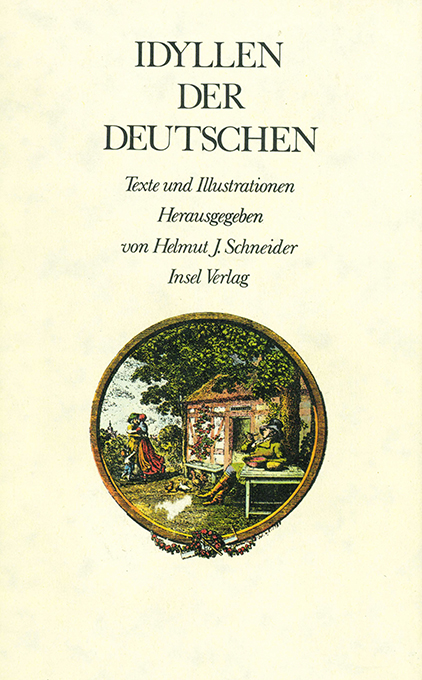 Idyllen der Deutschen. Texte und Illustrationen. Hrsg. von Helmut J. Schneider. Frankfurt, Insel 1978. Kl.-8°. 446, (2) s. mit zahlr. Illustrationen, OLwd. mit farb. illustr. OUmschl. Tadelloses Exemplar in Leinen (im Gegensatz zur Taschenbuchausgabe 1981). EA. * „Hier ist eine Einheit von Text, Bild und Forschung erreicht, in der die Gattung eine Chance hat, erneut in die literarische Erinnerung einzugehen und so zu überleben.“ (Neue Züricher Zeitung)