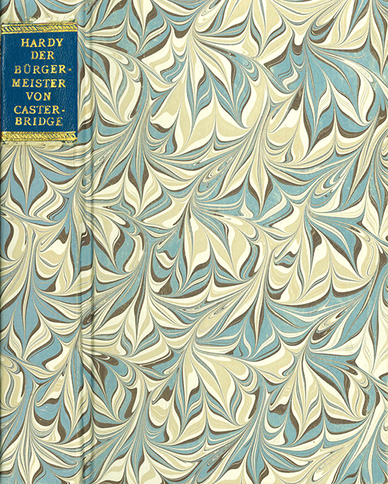 Hardy, Thomas, Der Bürgermeister von Casterbridge. Leben und Tod eines Mannes von Charakter. Übertr., Anmerkungen u. Nachwort von Eva-Maria König. Stuttgart, Reclam 1985. Kl.-8°. 446 S. mit einer Karte, Pappbd. der Zeit mit marmor. Überzugspapier u. goldgepr. Lederrückenschild. Tadelloses Exemplar im individuellen Handeinband. 1. Auflage.