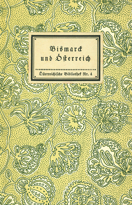 Insel-Bücherei – ÖB 4 – Zweybrück, Franz (Hg.), Bismarck und Österreich. (= Österreichische Bibliothek 4). Leipzig, Insel (1915). 112 S., späterer Pappbd. mit gemustertem Überzugspapier, montiert das Orig.-Titel- u. -Rückenschild (dieses nachgedunkelt). Gutes Exemplar. Kästner Ö.4.