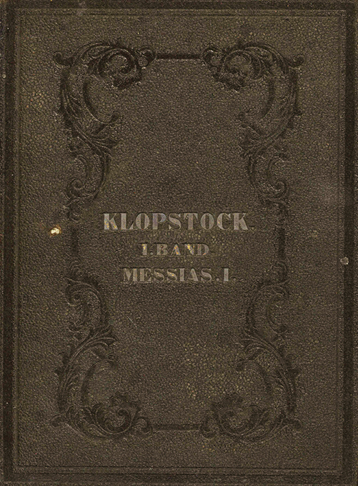 Klopstock – National-Bibliothek der Deutschen Classiker. Eine Anthologie in 100 Bänden. Neunundvierzigster [49.] Band: Klopstock’s Messias in zwanzig (hier elf) Gesängen. Zwei Teile in einem Band. Hildburghausen u. New York, Bibliograph. Institut (1855/56). Kl.-8°. 224 u. 208 S. mit Titelstahlstich (Christus nach Raphael), blindgepr. OLwd. mit goldgepr. Titeln u. Ganzgraphitschnitt (Vorsätze erneuert). Papier nur vereinzelt etw. stockfl.; insges. gutes Exemplar. Sarkowski 1.i. * Teil I: Erster bis sechster Gesang. Teil II: Siebenter bis eilfter Gesang. – Die Gesänge 12 – 20 sind separat erschienen und liegen hier nicht vor.