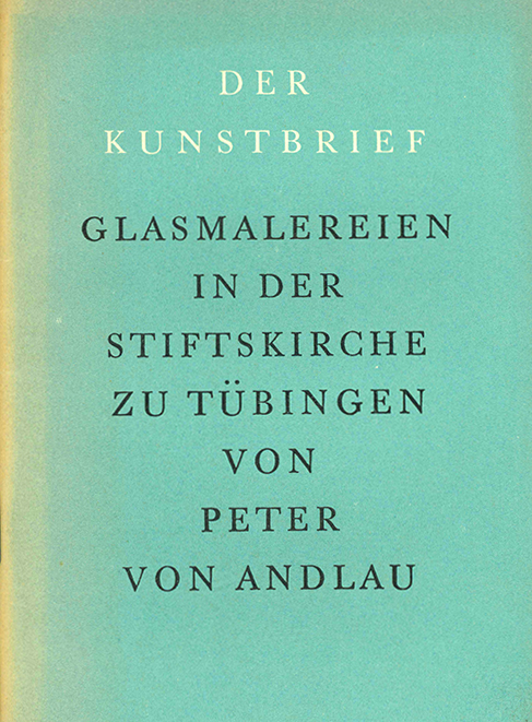 Tübingen – Andlau, Peter von, Glasmalereien in der Stiftskirche zu Tübingen. (= Der Kunstbrief 19). Berlin, Gebr. Mann (ca. 1944). Kl.-8°. 32 S. mit 3 Abbildungen + 16 Tafeln, OKt. (Rücken verblasst, geringe Knickspur). Insges. gutes Exemplar. EA.
