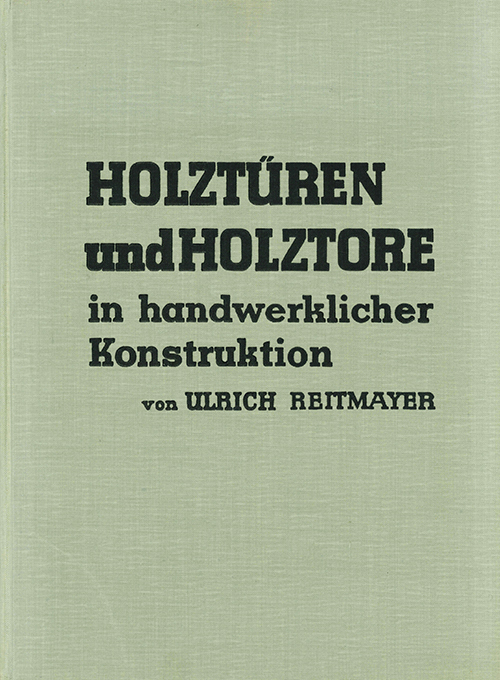 Holztüren – Reitmayer, Ulrich (Hg., Bearb.), Holztüren und Holztore in handwerklicher Konstruktion. Dritte Auflage mit 84 Abbildungen u. 119 zweifarb. Tafeln. Stuttgart, Hoffmann 1950. 25 x 34 cm. 176 S., OLwd. Nur minim. Gbrsp., gutes Exemplar mit Besitzvermerk des Münchner Architekten u. Stadtbaurats Hermann Syndikus.