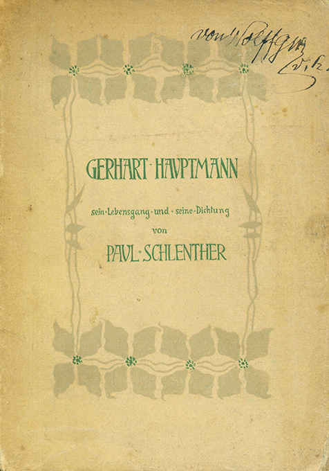 Hauptmann, G. – Schlenther, Paul, Gerhart Hauptmann. Leben und Werke. Berlin, S. Fischer 1898. 4. Aufl. (6), 268, (4) S. mit einigen Tafeln, OBrosch. (diese nachgedunkelt u. angestaubt, Rücken mit stärkeren Läsuren). Umschlag u. Vortitelbl. jeweils mit Besitzvermerk. Innen gut erhalten, unbeschnitten.