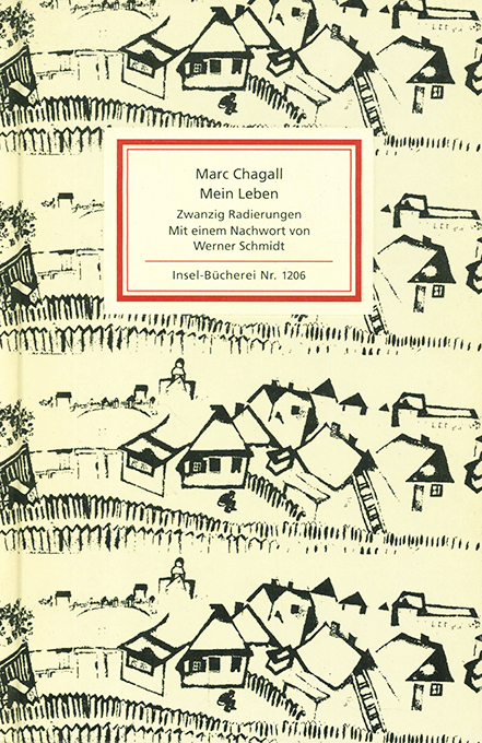 Insel-Bücherei 1206 – Chagall, Marc, Mein Leben. Zwanzig Radierungen. Nachwort von Werner Schmidt. (= Insel-Bücherei 1206). Frankfurt u. Leipzig, Insel 2000. Kl.-8°. 59, (5) S., illustr. OPp. (Überzugspapier Jenne 867). Beiliegt das Verlagszettelchen zu diesem Buch. 1. Auflage.