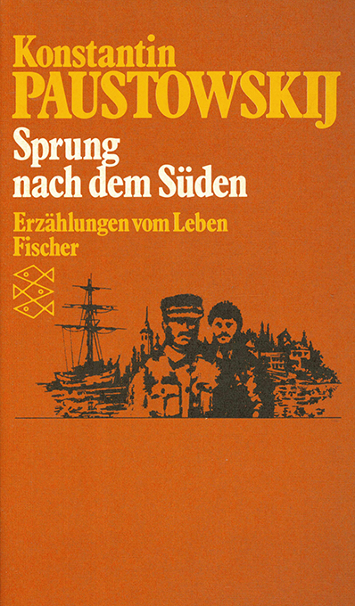 Paustowkij, Konstantin, Sprung nach dem Süden. Erzählungen vom Leben. Aus dem Russischen von Georg Schwarz. Frankfurt, Fischer Taschenbuch Verlag 1984 (Lizenz von Nymphenburger). Kl.-8°. 253, (7) S., illustr. OKt. Schnitt u. Papier wie immer materialbed. nachgedunkelt, sonst tadellos. Selten. 1. Taschenbuchauflage.