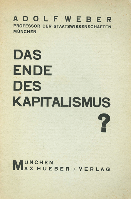 Kapitalismus – Weber, Adolf, Das Ende des Kapitalismus? München, Hueber 1929. Gr.-8°. 32 S., OKt. (minim. nachgedunkelt). Gutes Exemplar. EA.