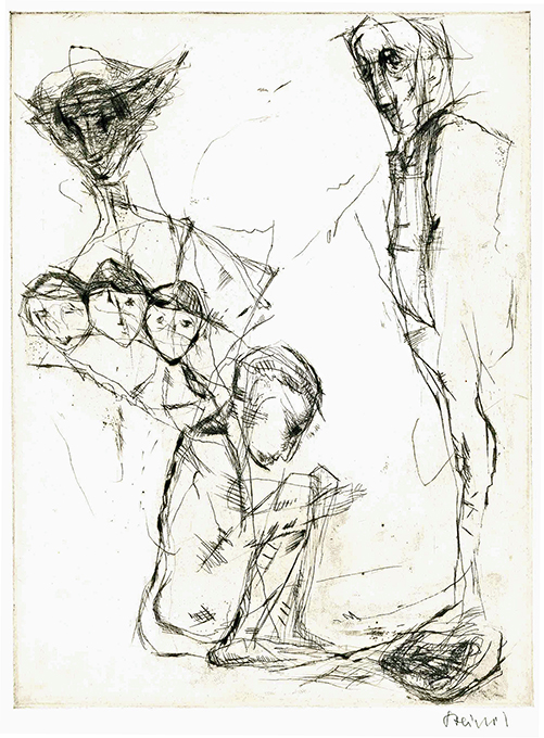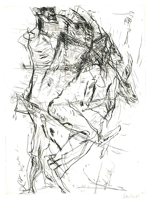 Mann, Thomas, Der Tod in Venedig. Mit einem einführenden Essay von Wolfgang Koeppen: Die Beschwörung der Liebe. Nachwort von Terence James Reed: Dichternöte – ein Spiel mit Leben und Tod. – Anhang: Textvarianten aus der früheren Fassung. Mit 8 signierten Original-Radierungen von Kurt Steinel. Unterreit 1993. 31,5 x 38,5 cm. 95, (5) S. u. 8 Graphikbl., Orig.-Ganzfranzband in Kassette. Der sehr empfindliche Überzugsstoff von Kassette u. Suitenmappe stellenw. gering abgegriffen, sonst tadellos. Jonas 93.142 (Koeppen). * Vierter Druck der Antinous Presse. Eins von 5 (ges. 95) numer. Exemplaren der Luxusausgabe in unikalem Meistereinband und mit Suitenmappe. – Jedes dieser fünf Exemplare wurde mit einem anderen Einband (Maroquinband mit Goldprägung, bemalter Pergamentband u.a.) versehen. Unser Exemplar ist das mit Abstand aufwändigste: Kurt Steinel schuf als Vorlage eigens für dieses Exemplar eine Gouache, die Roland Meuter als Mosaikeinband mit Lederauflagen in zehn verschiedenen Farben und mit Blindprägungen umgesetzt hat. Um die Farben des Entwurfes möglichst vorlagengetreu wiederzugeben, mußten die meisten Leder speziell eingefärbt werden. Zunächst wurde der Band in Ganzfranz-Technik in lavendelfarbenes Maroquin-Ziegenleder gebunden. Für sämtliche Dekorationselemente wurden Schablonen gefertigt, um die Intarsien bzw. Lederauflagen zuzuschneiden. Entstanden ist eine wunderschöne, abstrahierte Stadtkulisse Venedigs. Der Band ist mit Kopfgoldschnitt und handgestochenen französischen Kapitalen in drei Farben sowie mit lavendelfarbenen Velourlederspiegeln versehen. Signiert: „K. Steinel“ u. „R. Meuter, Ascona“. – In einer Kassette mit einem Überzugsstoff von Mariano Fortuny u. goldgeprägter Lederauflage auf dem Rücken der Kassette. Dazu eine ebenfalls mit Fortuny-Stoff überzogene Suitenmappe, enthaltend zusätzliche Abzüge sämtlicher acht Radierungen auf Bütten, jeweils numeriert u. signiert, eine Original-Bleistiftzeichnung von Kurt Steinel sowie eine Original-Kupferplatte in einem Passepartout. Die Platte wurde durch eine dezent geätzte Signatur entwertet, entgalvanisiert, eingefärbt und dann lackiert. – Der wertvolle Überzugsstoff wurde überwiegend in Handarbeit in Venedig hergestellt, als Motiv der venezianische Löwe, im Modeldruckverfahren in Goldbronze auf in Blautönen gefärbten Stoff gedruckt. – Druckvermerk mit Signaturen von Koeppen, Steinel u. Reed. Satz der Texte aus der Centaur-Antiqua u. der Arrighi, in Blau u. Schwarz auf Hahnemühle-Kupferdruckbütten gedruckt.
